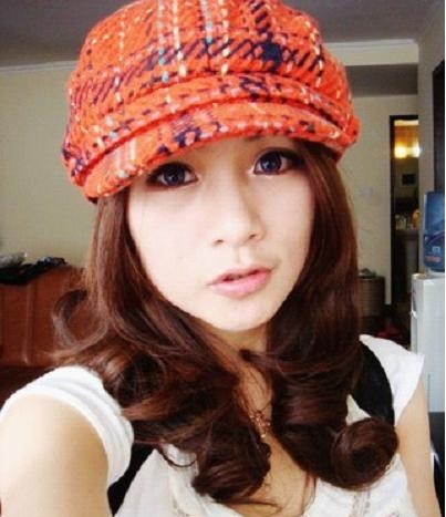 橙色的格子八角春季帽子款式,真是華麗麗到不行,即便你的行頭毫無(wú)特色可言,只要它,絕對(duì)變身養(yǎng)眼美女。