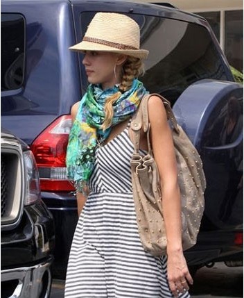 杰西卡阿爾達(dá)的街拍向來為人所稱道,草編巴拿馬帽+黑白條紋棉質(zhì)長裙,隨意中流露氣質(zhì)。草編帽是明星們一直鐘愛的帽子款式,手工的氣息彰顯著帽子的與眾不同,你也看可以試試哦。