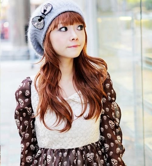 毛線毛質(zhì)帽子+微卷齊劉海長發(fā),既保暖,又打造時(shí)尚造型,突顯超級(jí)甜美耀眼形象,淡雅的帽子搭配水晶蝴蝶結(jié),在清純中加入一些活潑與可愛。