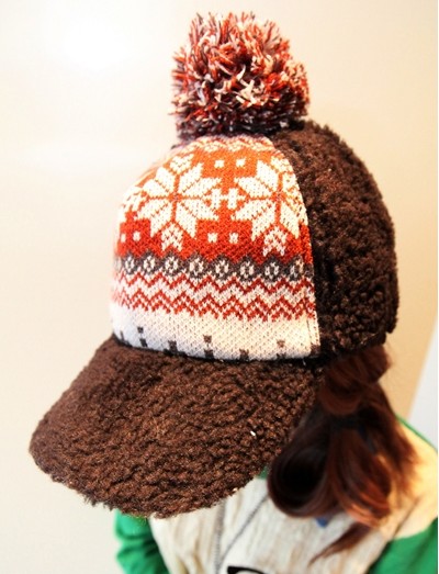 雪花毛個性帽子,棒球帽的款式,休閑范兒之中不失甜美感覺。是今年非常流行的北歐復(fù)古風(fēng)格呢。
