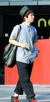 夏日街頭標(biāo)準(zhǔn)的陽光質(zhì)感潮男裝扮,雖然并無特別搞怪之處,但黑色TEE與橙色短褲配白色波鞋的造型,怎么穿都經(jīng)典時(shí)髦。一條低調(diào)的長(zhǎng)項(xiàng)鏈與后側(cè)微微翹起的嘻哈運(yùn)動(dòng)帽,帶來了男人的小俏皮。