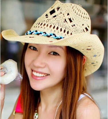 這款帽子是不是帶有濃濃的西部風(fēng)情呢?藍(lán)色與白色的串珠,增加了一處亮點(diǎn)。