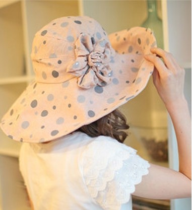 夏日出游的話,一定要選擇一款大帽沿的帽子。這款裸粉色的波點(diǎn)帽,十分突顯女孩的淑女氣質(zhì)。